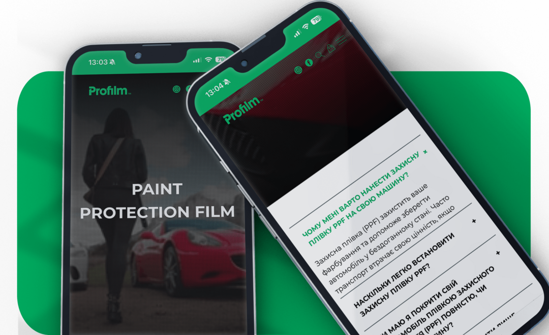 Дизайн сайту для ProFilmЗгідно з технічним завданням, ми створили дизайн сайту для компанії ProFilm Group (https://profilmgrp.com.ua/), яка спеціалізується на виробництві віконних плівок та захисту лакофарбового покриття (PPF). Наша мета полягала в тому, щоб створити сучасний, інтуїтивно зрозумілий та візуально привабливий вебсайт, що ефективно представляє компанію та її продукти.