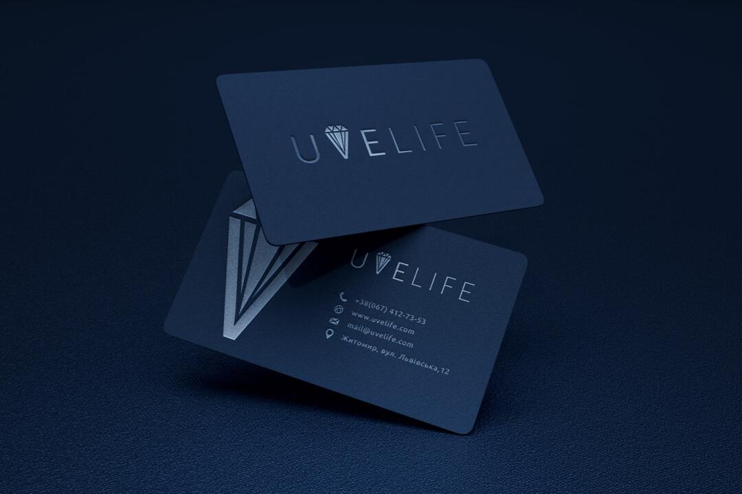 Розробка логотипу для ювелірної компанії «UVELIFE» та приклади застосування на рекламно-інформаційних носіях